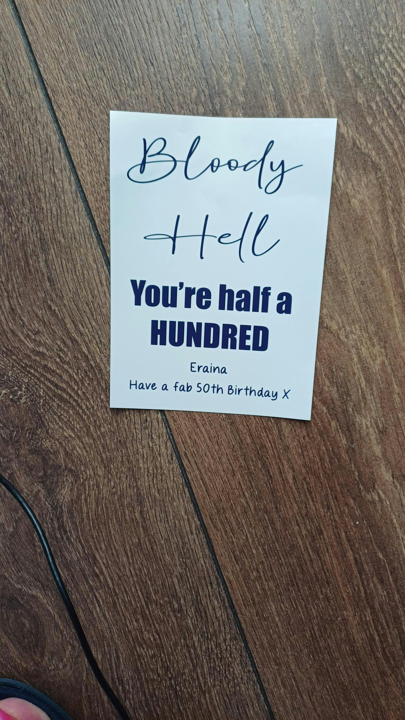 Celebrate a milestone with a touch of humour using our "Bloody Hell You're Half a Hundred" wine label. Perfect for those turning 50 who appreciate a good laugh, this label adds a unique and personalised touch to any wine bottle. Customise it with your own message to make the occasion even more memorable.